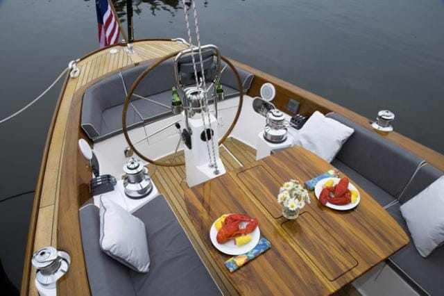A kontrol panel előtt, a cockpit jobb és bal oldalán tágas ülések vannak, rajtuk Sunbrella huzatos hadszivacs párnákkal. Az ülések több mint 180 centiméter hosszúak, és kényelmesek hat személy részére, vagy egy szundításra. Mindhárom ülésen találhatók tetők, melyek a deck alatti tárolók nyílásai. Egy szabványos, fényes lakkozású, lehajtható teakfa asztal van a cockpit padlójához rögzítve.