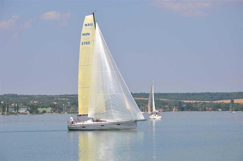 Nau 370 Run Tervező: Andrej Justin Gyártó: Nautic Boat Kft Technikai adatok: Teljes hossz: 10 990 mm Vízvonalhossz: 10 485 mm Teljes szélesség: 3460 mm Belmagasság: 1900 mm Merülés (tavi/tengeri): 1950/2450 mm Tőkesúly: 1500 kg Teljes súly (karbon/ üvegszál): 4000/4700 kg RM @ 30o: 10 770 Nm Fekvőhelyek (két kabinos/háromkabinos): 4+2/6+2 Hajótest: karbon-epoxi szendvicsszerkezet vákuumtechnológiával, hőkezelve Fedélzeti szerelvények: Harken Motor: Volvo Penta dízel 20/30 HP saildrive összecsukódó propellerrel Rudazat: Pauger Carbon, frakcionális karbonárboc, -boom, két pár karbonszáling, ROD állókötélzet, karbon orrsudár Vitorlázat: grósz 51 négyzetméter square-top szabással, 6 töviglattnival, genua 40 négyzetméter 3 latnival Gennaker: 164 négyzetméter