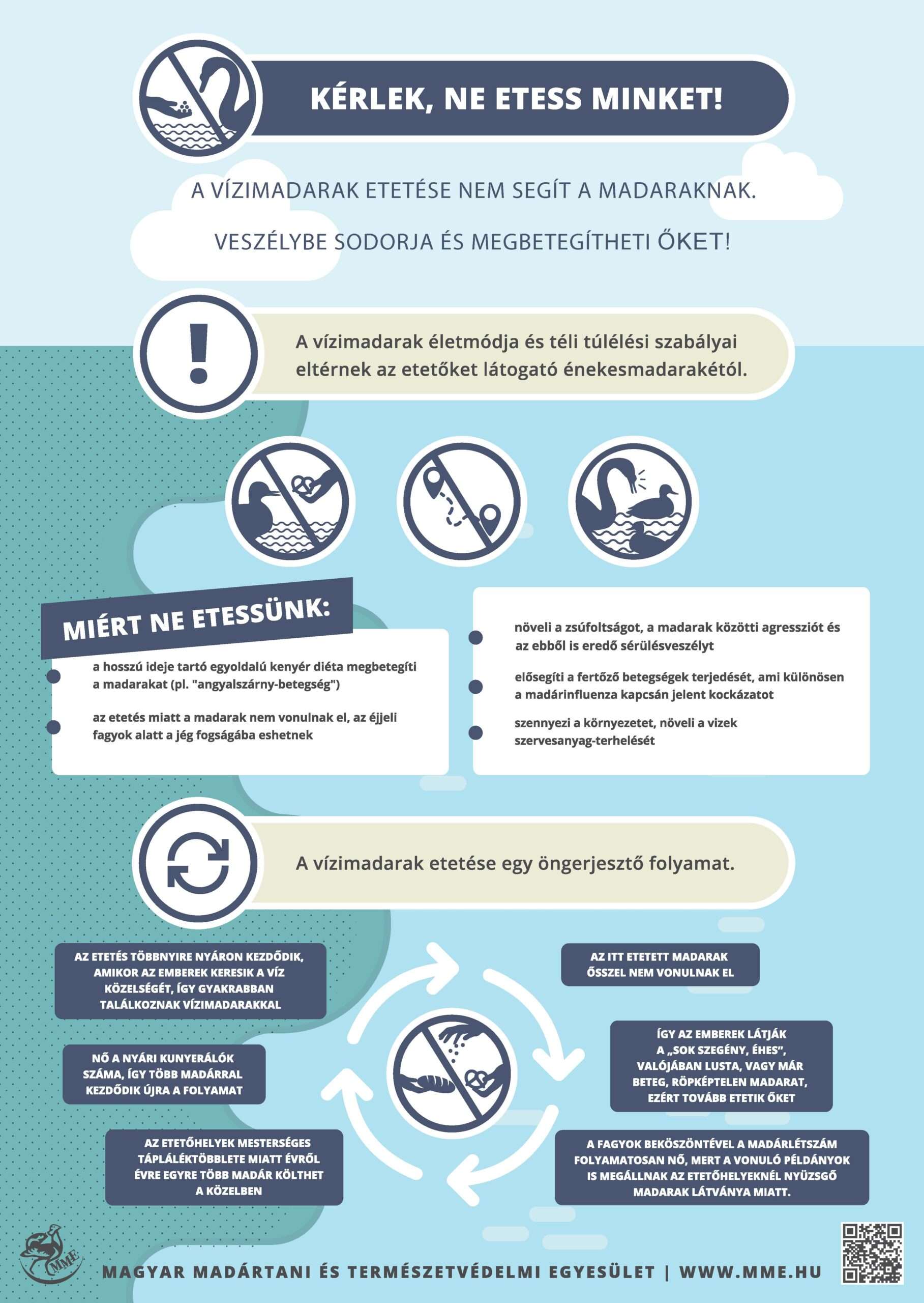 A Magyar Madártani és Természetvédelmi Egyesület a lakosság tájékoztatása, a strandokat, sétányokat üzemeltető önkormányzatok és a madarak segítése érdekében elkészített egy ingyenesen letölthető, kinyomtatható és kihelyezhető plakátot is a vízimadarak etetéséről. A hirdetményt az érdeklődők a www.mme.hu weboldalon tekinthetik meg.