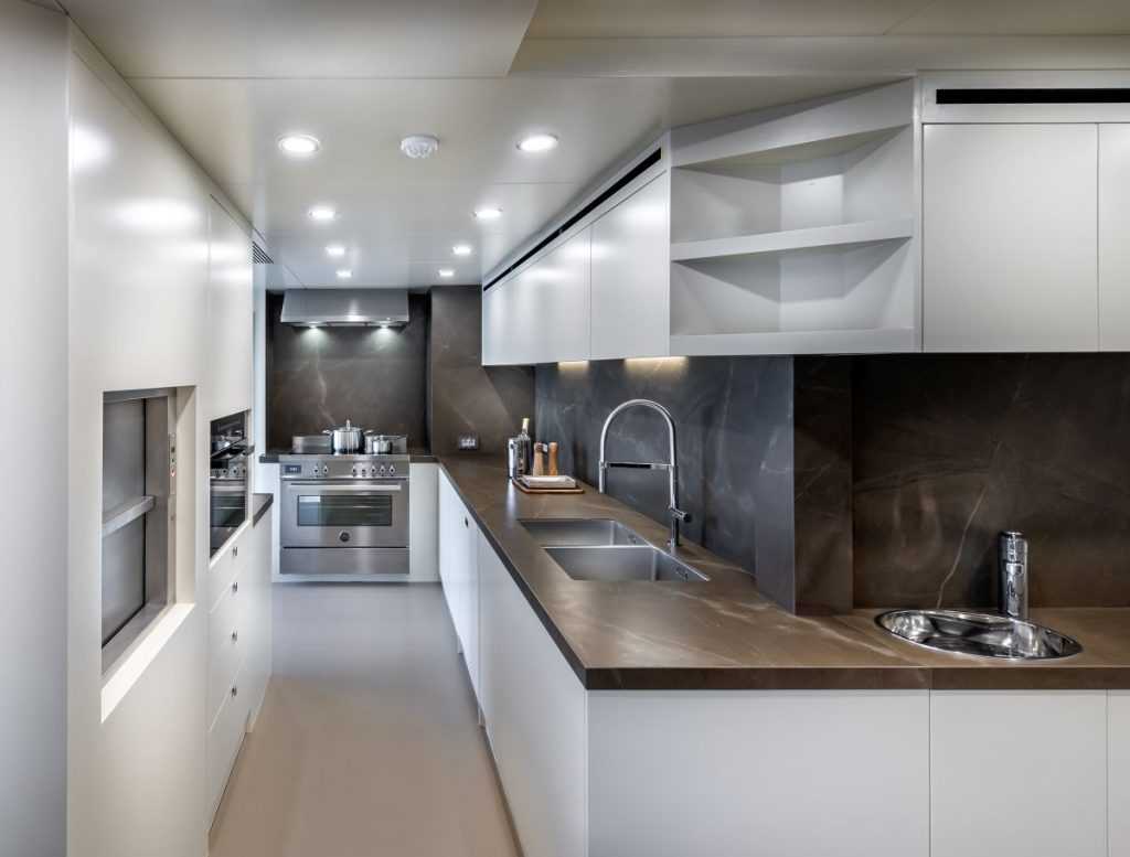 A jacht tágas belső kialakításával több közösségi tér jött létre. A főfedélzeten a szalon és a kabinok is hatalmas, a padlótól a mennyezetig érő ablakokat kaptak. Az étkezőasztal melletti ablak teljesen eltolható, így egy mozdulattal a szabadba költözhet a családi vacsora.
