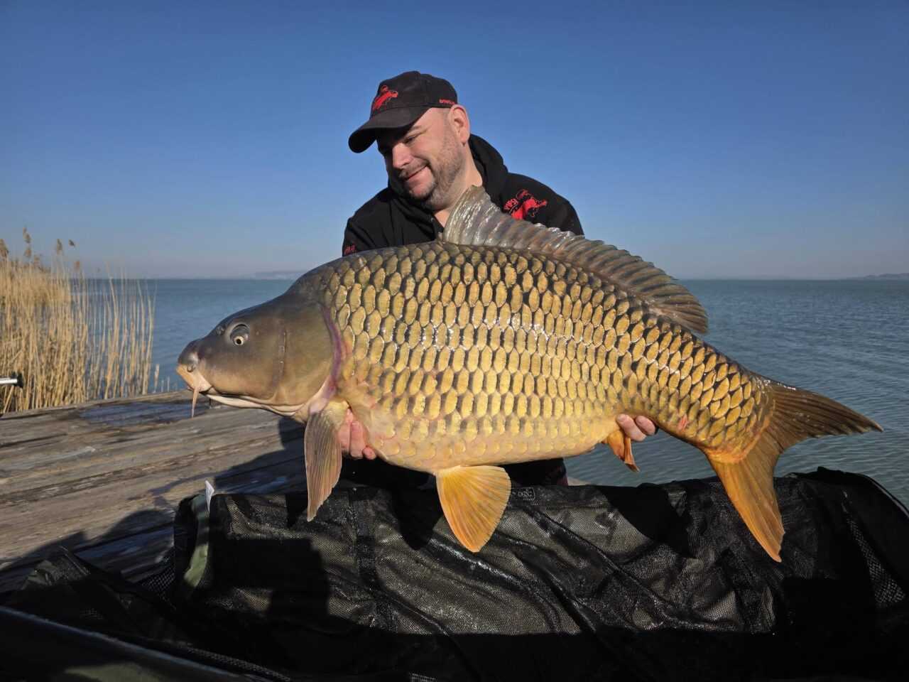 Schiff Márton Balatonfenyvesnél fogta a 23,6 kilogrammos tőpontyot. A hal egy 28 milliméteres, sárgabarack-joghurt ízesítésű bojlira kapott rá, és komoly fárasztás után került partra.