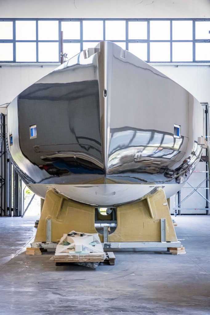 Alberto Cocchi felvételein keresztül figyelhetjük meg a Cantiere del Pardo szakembereit, akik keményen dolgoznak a Grand Soleil Yachts legújabb projektjének befejezésén. A Grand Soleil flotta új zászlóshajója néhány héten belül vízre kerül, és a 2022-es Cannes Yachting Festivalon lesz a világpremierje.