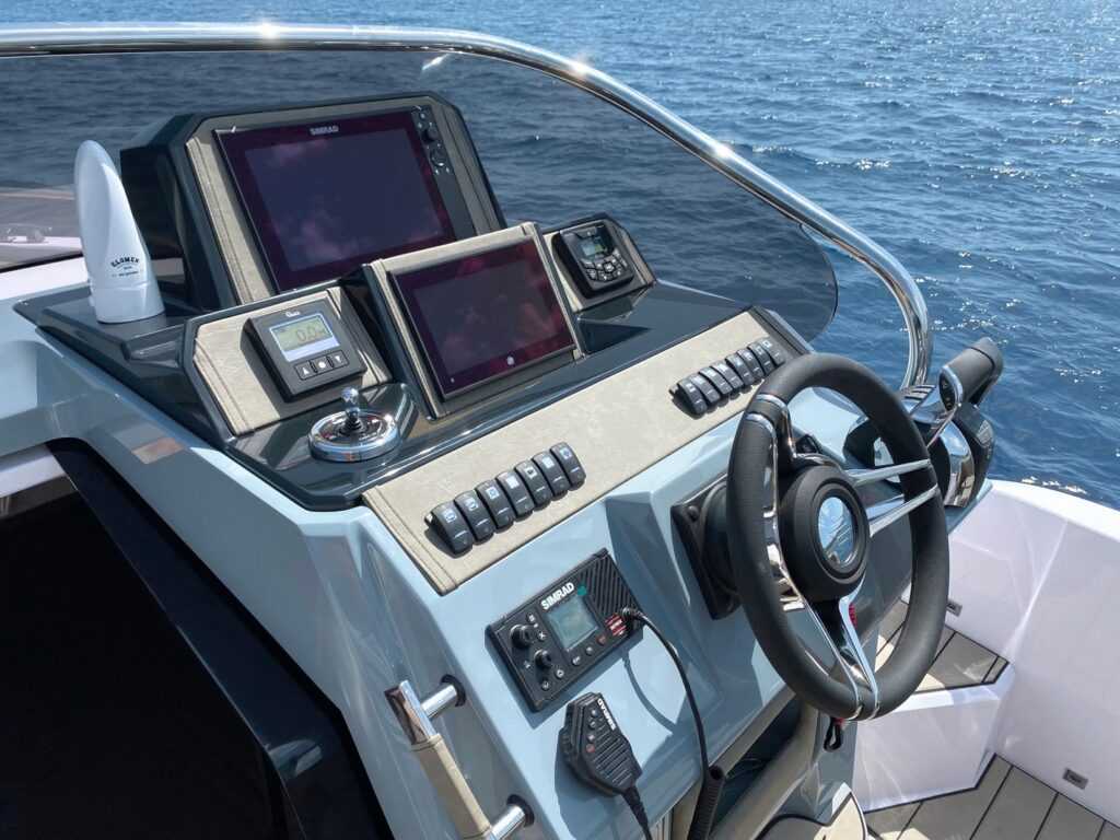 A luxuskategóriába sorolt cruiser számára a tökéletes trimmelésben a Flap Control System segít, ugyanis a motorok mozgatása mellett a hajót egy csappantyús vezérlőrendszerrel (trimlapokkal) is felszerelték. Ettől lesz a hajó könnyen és élvezhetően vezethető, valamint kellemesen csendes akár nagy sebességnél is. Ez a megoldás jelentős szerepet játszik az üzemanyag-megtakarítás során is. A kormányállásból mindenre tökéletes rálátásunk nyílik, a könnyed kanyarodást pedig a szervokormányzás segíti.