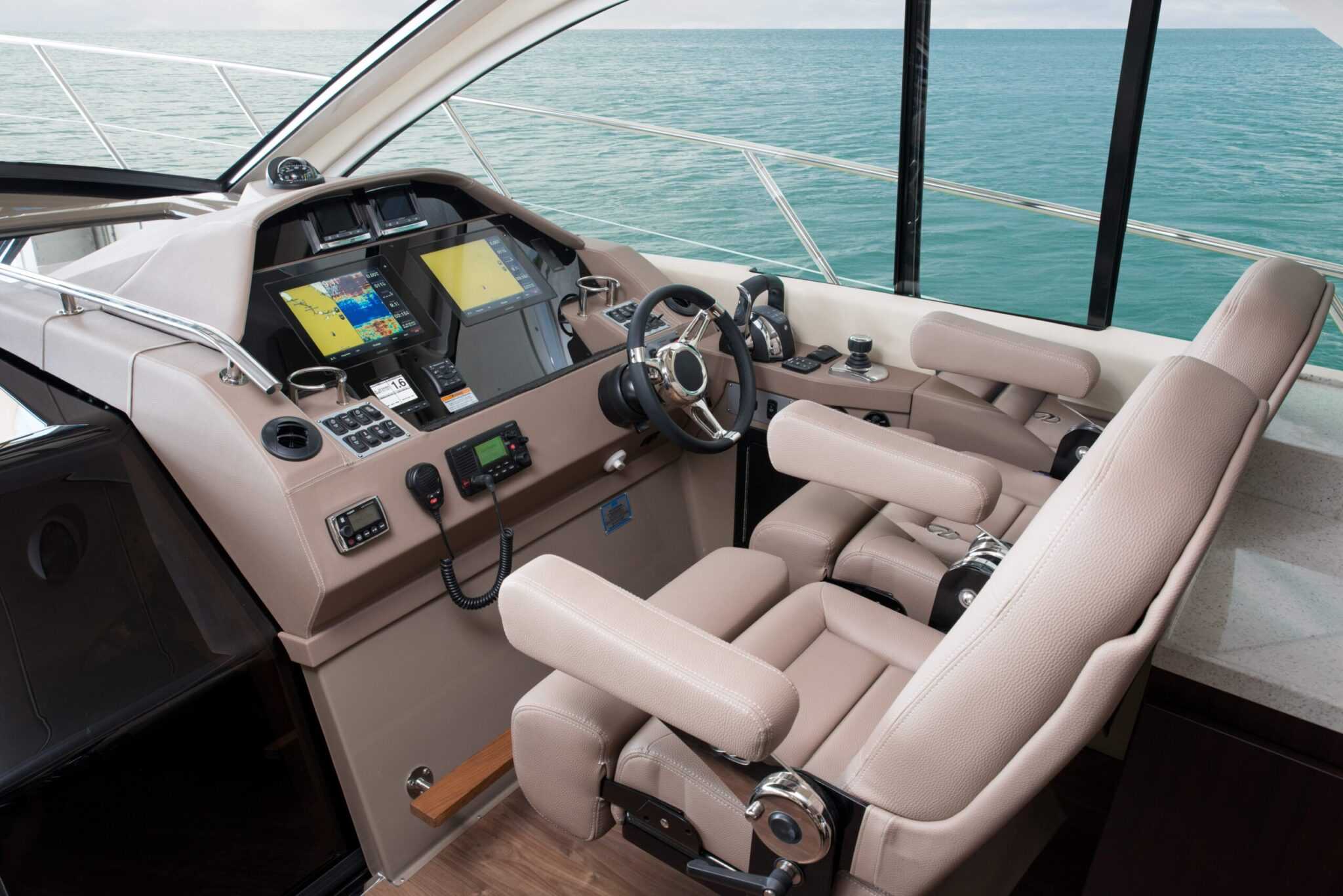 A másik fontos technikai csoda az a Regal 53 Sport Coupe fedélzetén, hogy teljesen rá tud csatlakozni a Maretron Vessel Monitoring and Control Systemre. A monitorrendszer képes a távolból is figyelmeztetni a tulajdonost, ha bármilyen hiba merül fel. Azt is látja, ha bekapcsol a fenékvízszivattyú vagy egy pillanatra megszakad a parti áram. Ha pedig kell, akár a generátort is bekapcsolja a távfelügyeleti rendszer.
