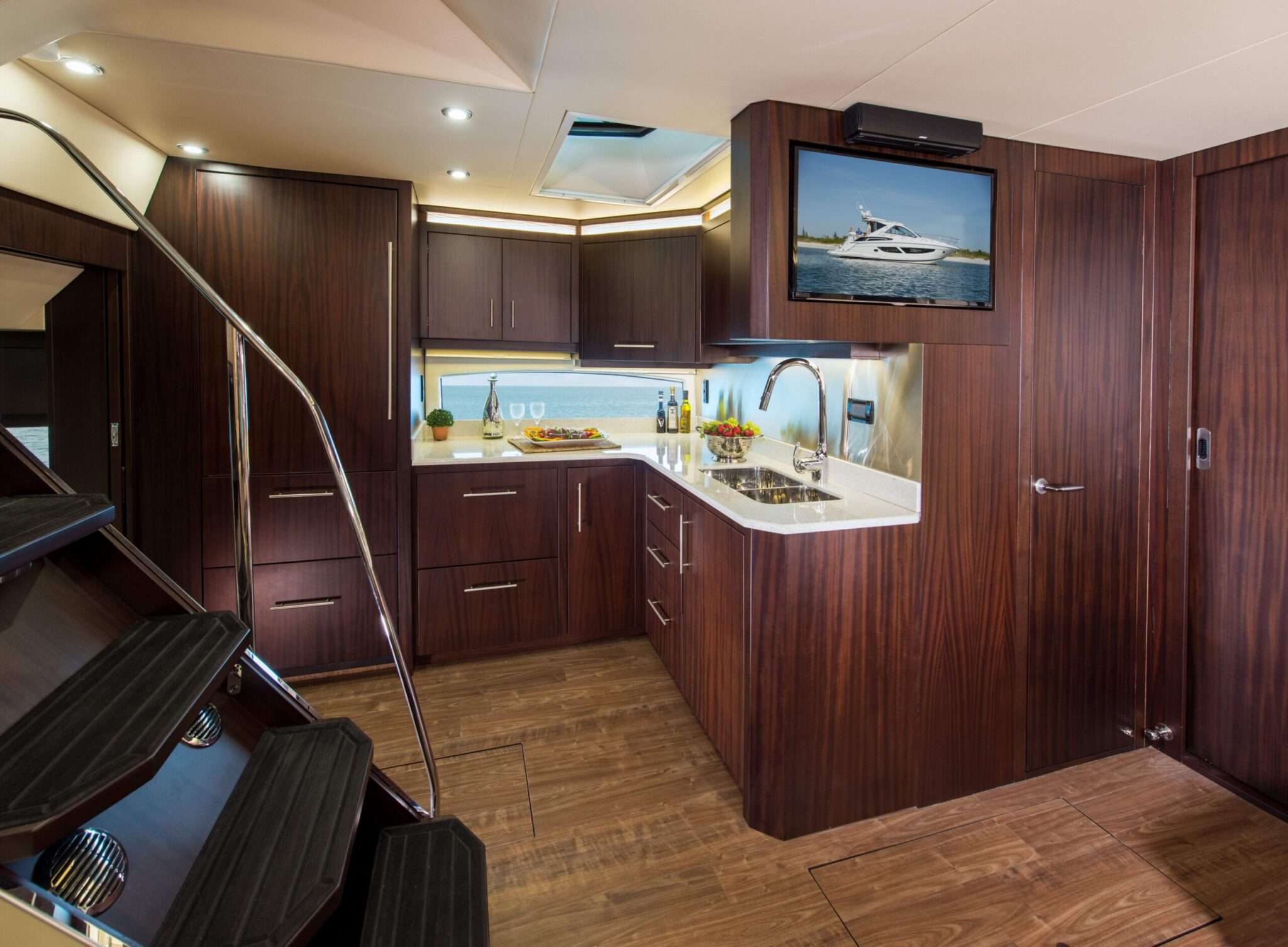 A hajó belsejébe tekintve legelőször a tiszta keményfa bútorzat szép megmunkálása tűnik fel. Láthatóan nem hoztak kompromisszumos döntéseket a belső megtervezésekor, minden apró részletre ügyeltek. Ez különösen az évek múlásával hálálja meg magát, a prémium anyag és megmunkálás nemcsak szebb látványt eredményez, de sokkal tartósabb is. Természetesen az ára is jóval magasabb, de ha hosszú távon nézzük, akkor bőven megéri.