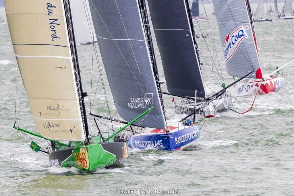 A gyenge délkeleti szélben a 32 méter hosszú Ultrim trimaránok vezetik a mezőnyt. Az őket követő 20 egységből álló Imoca 60 flottából 4 hajó is hölgy kormányossal indult. A Class 40 flottát 18 csapat képviseli, és természetesen itt van a Rambler 88 és a Dovel 100 SHK Scallywag is.
