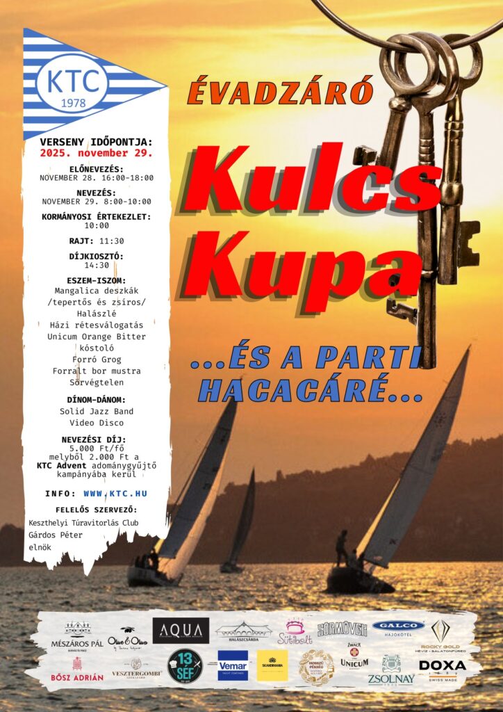Az időpont „fix”, november utolsó szombatja (idén november 29.). Ahogy az is, hogy a „Legkitartóbb hajó” díja egy vándorkulcs. A nemes cél: tartósélelmiszer csomag 80 keszthelyi rászoruló család részére Karácsonykor. Ehhez várnak felajánlásokat, a Kulcs kupával kezdve meg az adománygyűjtő időszakot: minden nevezésből 2000 forint a KTC adventbe kerül.