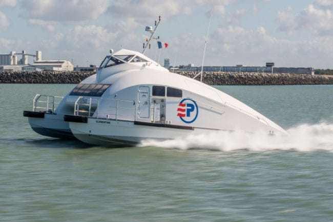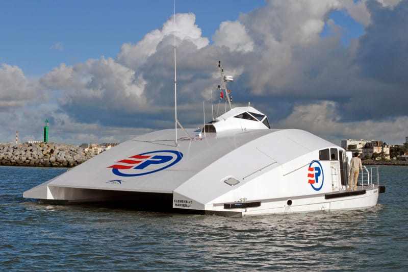 Nem csak az alakja miatt különleges a francia hajó. Hajtásáról ugyanis két Scania DI13-as, egyenként 600 lóerős motor gondoskodik. A Clémentine nevet viselő, 25 ülőhelyes személyhajót az Advanced Aerodynamic Vessels (A2V) tervezte.