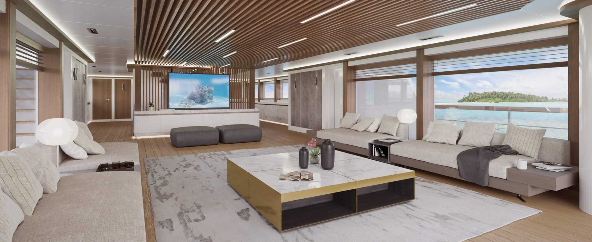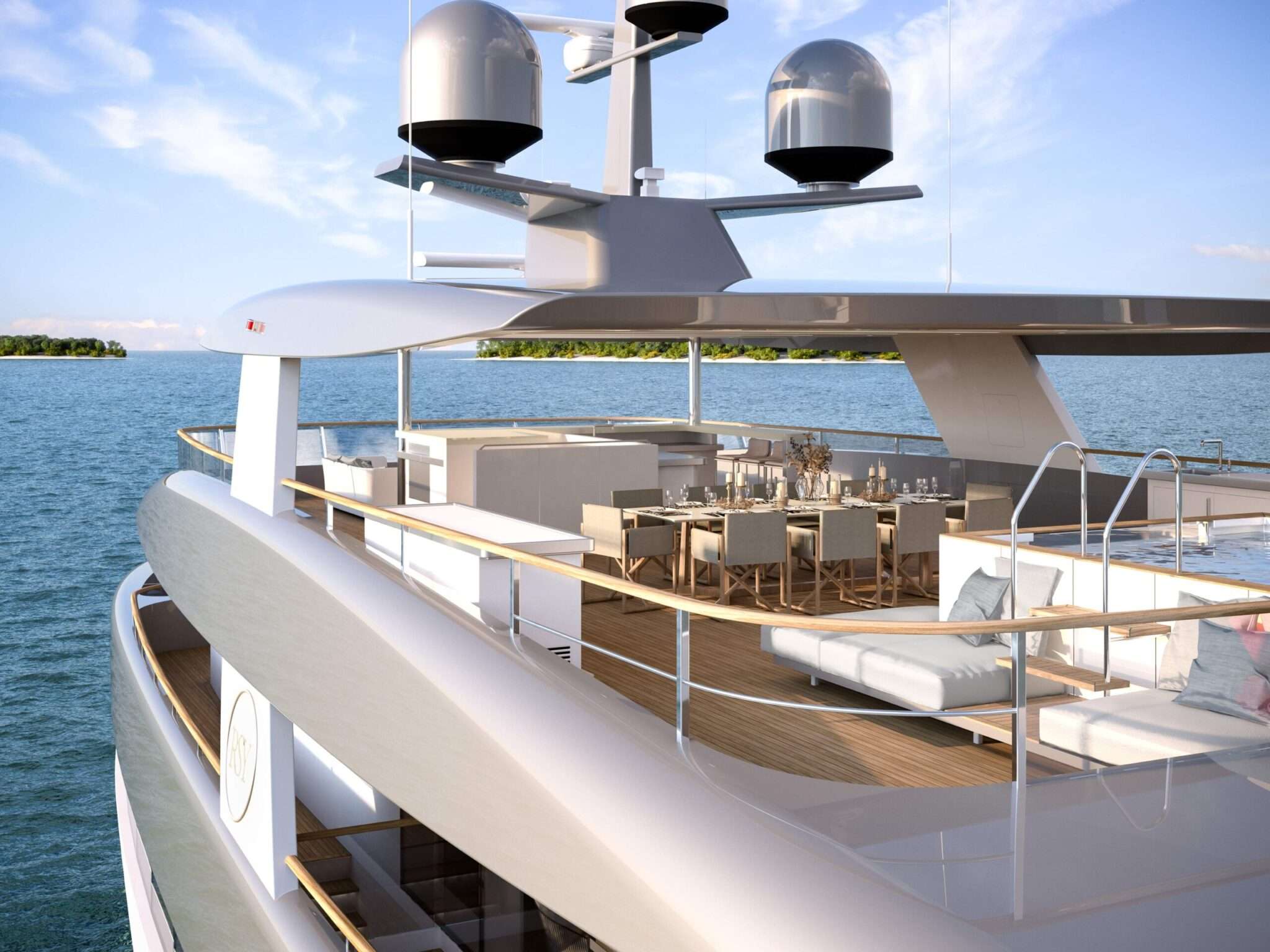 Mindkét jacht esetén megtaláljuk a tulajdonosi lakosztályt a felső fedélzeten, 180 fokos kilátással és privát terasszal. A 35 méteres hajó 8,25 méter széles, a főfedélzeten a tender mozgatására szolgáló daruval és egy 6,7 négyzetméteres medencével. Ha az utóbbi lefedik, akkor ott kaphat helyet egy mini-tengeralattjáró.