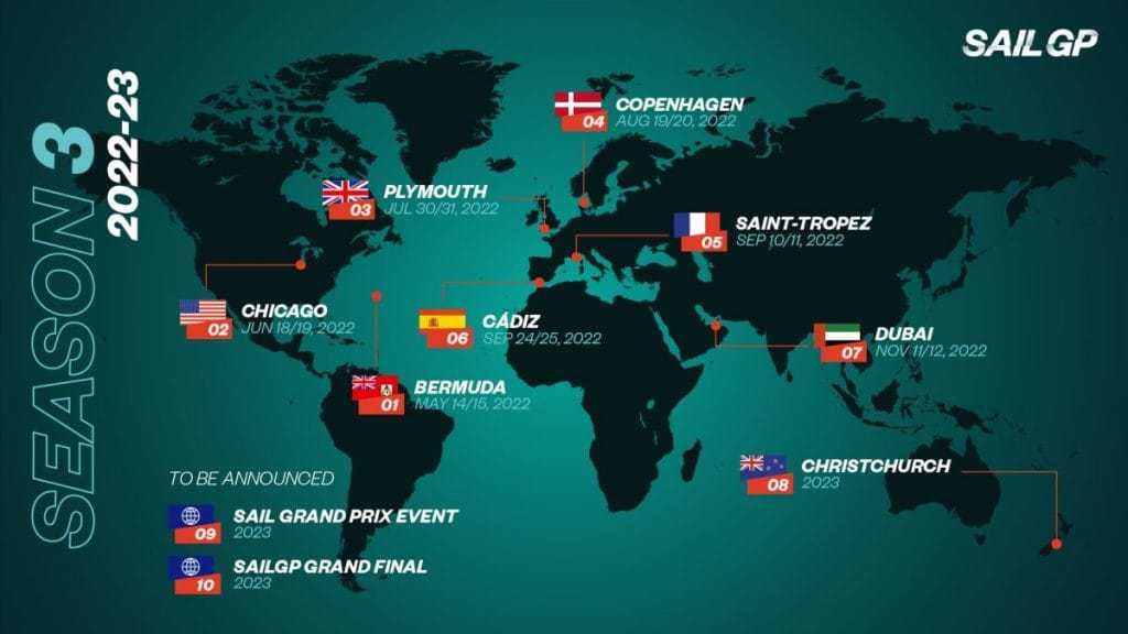A SailGP harmadik szezonjában Ausztrália, Dánia, Franciaország, Nagy-Britannia, Japán, Új-Zéland, Spanyolország és az Egyesült Államok képviselői mellett ott lesz Kanada és Svájc csapata, ahogy a versenyek száma is tízre bővül. Ebből hétre 2022-ben kerül sor, a többit 2023 első negyedévében rendezik, a záró regattát pedig 2023 áprilisában.