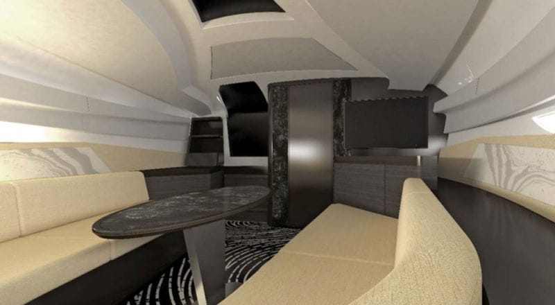 A kabinban kétégős tűzhely, mosogató és beépített hűtőszekrény található. A beépített audio-video szórakoztató-rendszer 4G wifi- és WAN-technológiával működik. A zene a mennyezetbe süllyesztett Revolution Acoustics hangsugárzókból árad, és a tökéletes hangminőséget a Mark Levinson Reference digitális erősítője garantálja – írta a formula.hu.