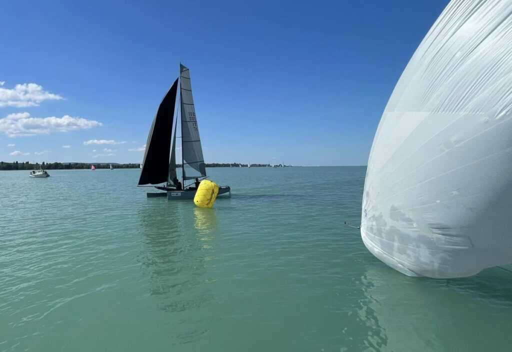 Amint azt az előzetes online nevezésekből sejteni lehetett, az idén is nagy létszámú mezőny vágott neki szombat reggel a Zamárdi–Ezüstpart–Szántód–Tihany–Zamárdi távnak. A rajt után egy időre igencsak alábbhagyott a szél, de némi várakozás után jött észak felől egy frissülés, és kellemes tempóban haladt a mezőny kelet felé. A Nánási Balázs kormányozta szkiff hamar az élre tört, komoly csatákat vívva a katamaránokkal.
