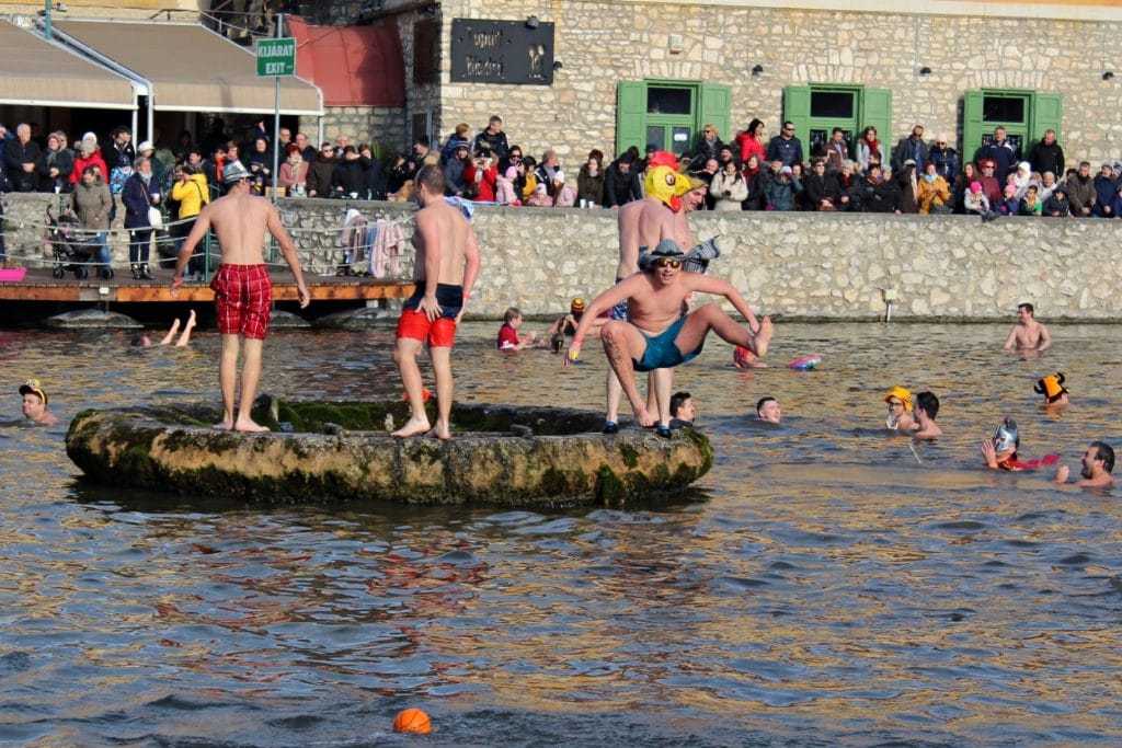 Szilveszterkor fürdőzőkkel telt meg a Malom-tó