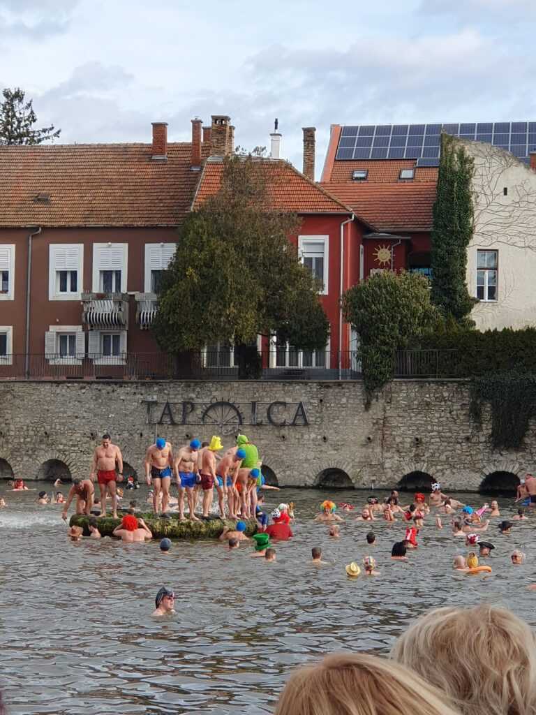 A levegő tíz, a víz a szokásos 18 fokkal várta a csobbanókat, akik előzetesen több mint 270-en neveztek a páratlan év végi programra. Az idén is Schirilla György vezényelte le a fürdést a tőle megszokott humorral és lendülettel, az egészséges életmódra, annak részeként a rendszeres testmozgásra is buzdítva mindenkit. Amint elmondta, a hideg vizes fürdések számát folyamatosan csökkenti, de a tapolcai mártózást nem hagyná ki. Óriási élményt jelent mindenki számára ily módon búcsúztatni az óévet.