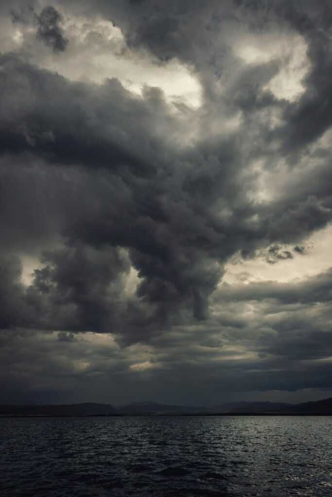A nyílt vízen a hajót „heave-to”-ba tesszük, vagyis sodródunk, ha van elég sea room. Ez valószínűleg egy rövid nyári zivatar, és pár óra alatt véget ér. Várhatóan hajnalban vissza lehet állni az öbölbe horgonyra a tartalék horgonnyal.