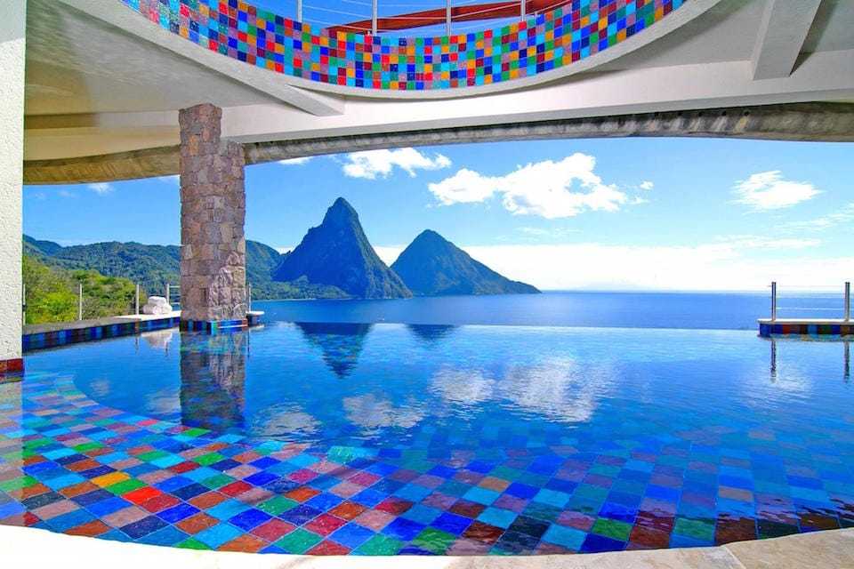 Jade Mountain Resort, St. Lucia Ez a szálláshely arról híres, hogy minden egyes szobájából kihagyták a negyedik falat. Nem a költséghatékonyság volt a cél, hanem hogy minden pillanatban élvezzük a látványt.