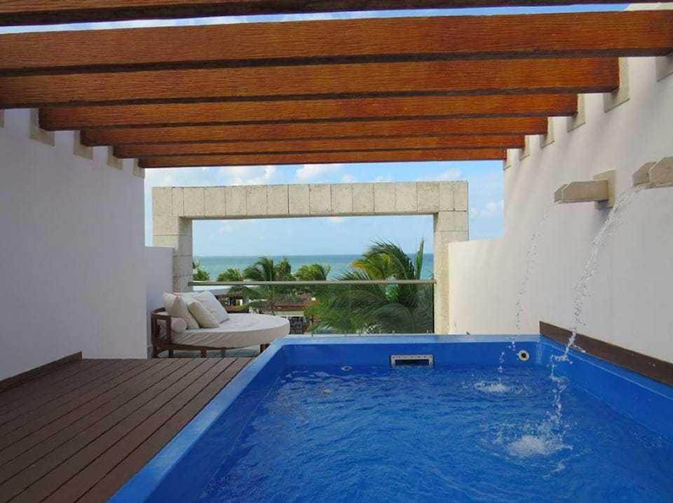 Grand Veals, Mexikó Itt a kötelező medence témát úgy oldották meg, hogy konkrétan az erkélyen helyezték el. Természetesen a Karib-tenger egy karnyújtásnyira van.