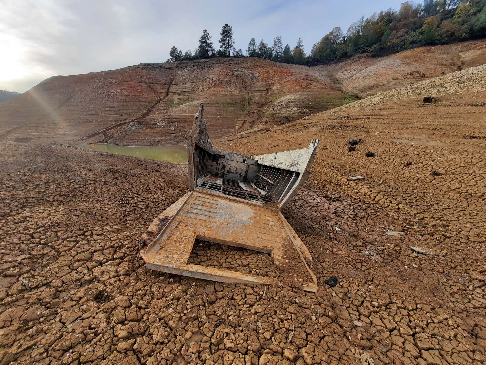 Egy apadó kaliforniai víztározóból került elő egy a második világháború idején használt hajó.
