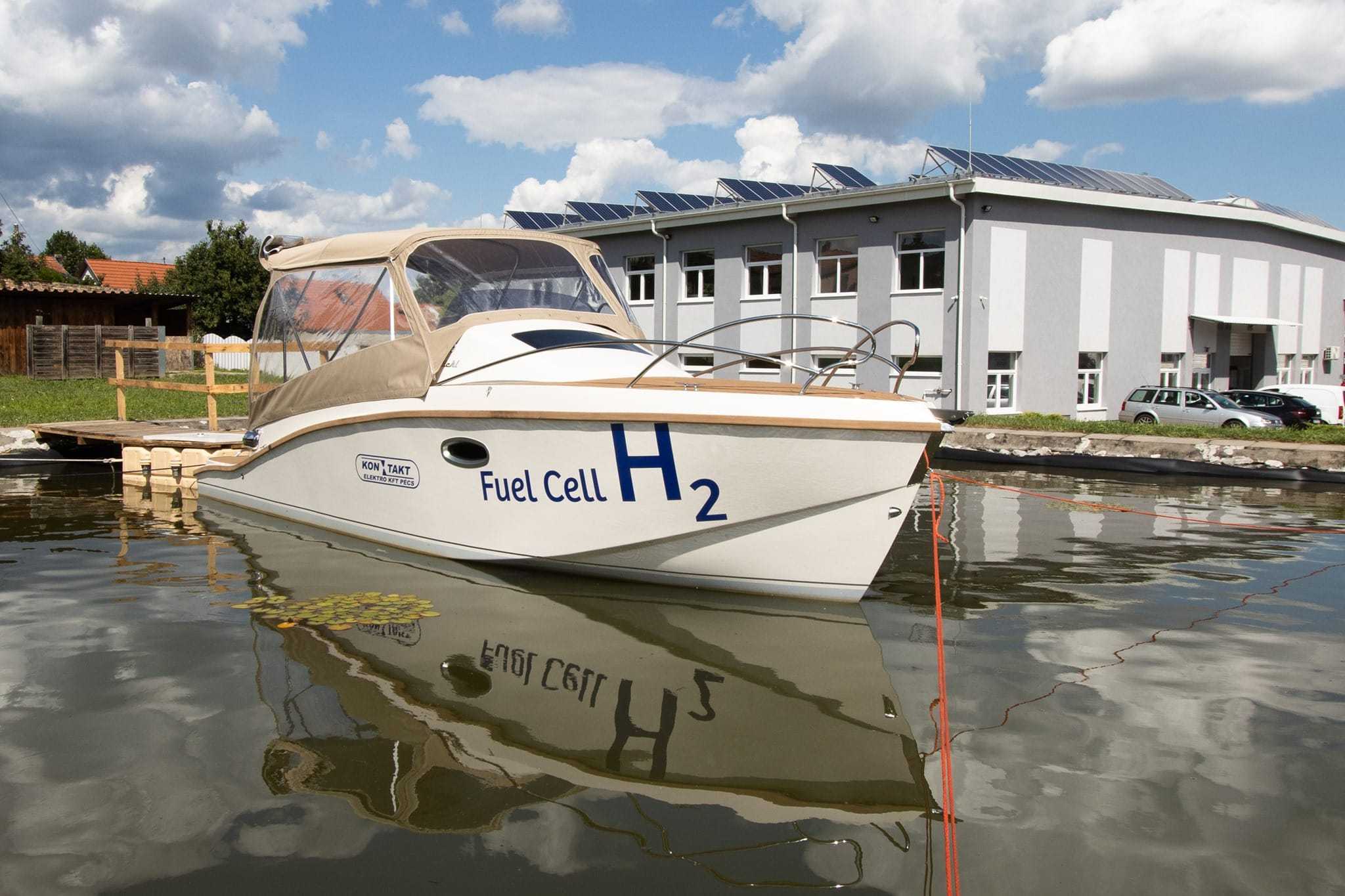 Bemutatták az első magyar fejlesztésű hidrogénüzemű üzemanyagcellás kishajót Balatonkenesén.