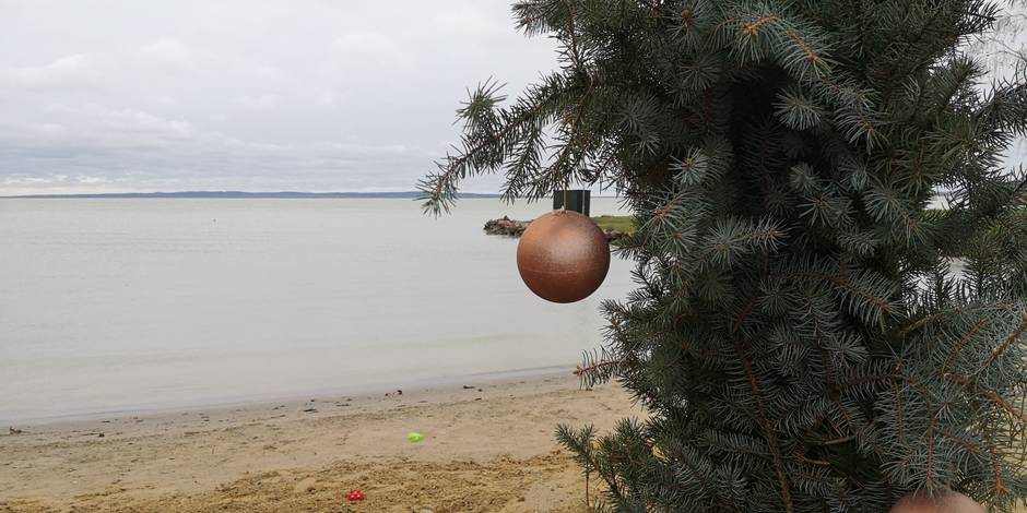 Az idén is felállították a karácsonyfát a szigligeti strand vizében, folytatva az évtizedes hagyományt.