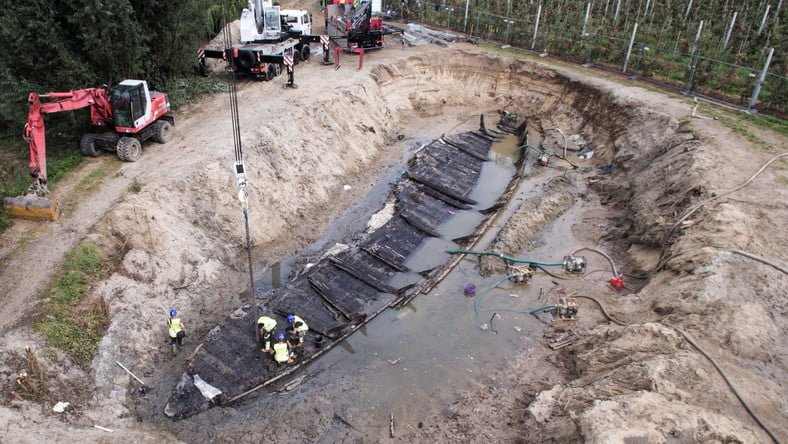 Hatszáz éves fahajót találtak egy almaföld közepén