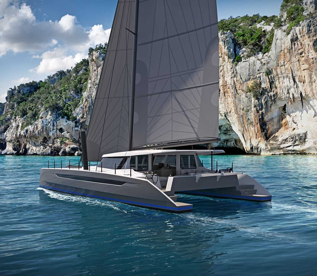 Az Evo 60 modern megjelenésű luxuskatamarán 2026-ban debütál a Nemzetközi Többtestű Kiállításon (International Multihull Show).