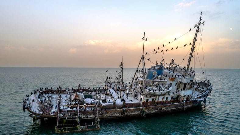 Egy hatalmas csapat kormorán vett birtokba egy hajót, nem messze Kuvait partjaitól, csakúgy, mint Alfred…