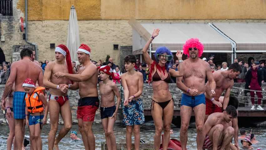 250-en csobbantak a tapolcai Malom-tóban szilveszterkor, hogy különleges módon és vidáman búcsúzzanak az óévtől.