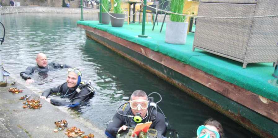 A Veszprém Megyei Búvárklub Egyesület tapolcai és nem helybeli búvárai a tapolcai Malom-tó megtisztításán dolgoztak.