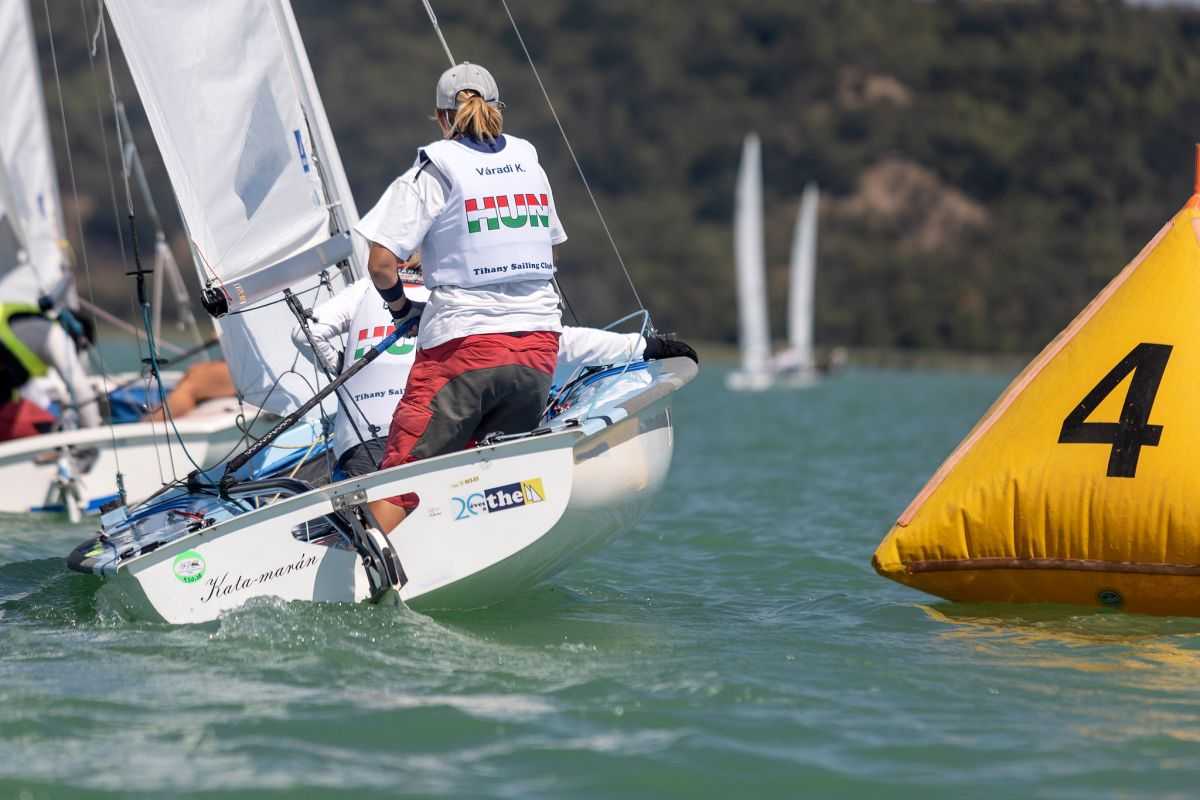 Továbbra is gyenge szélben tajlik Tihanyban a 470-es Masters Cup, ahol az induló párosok össz…