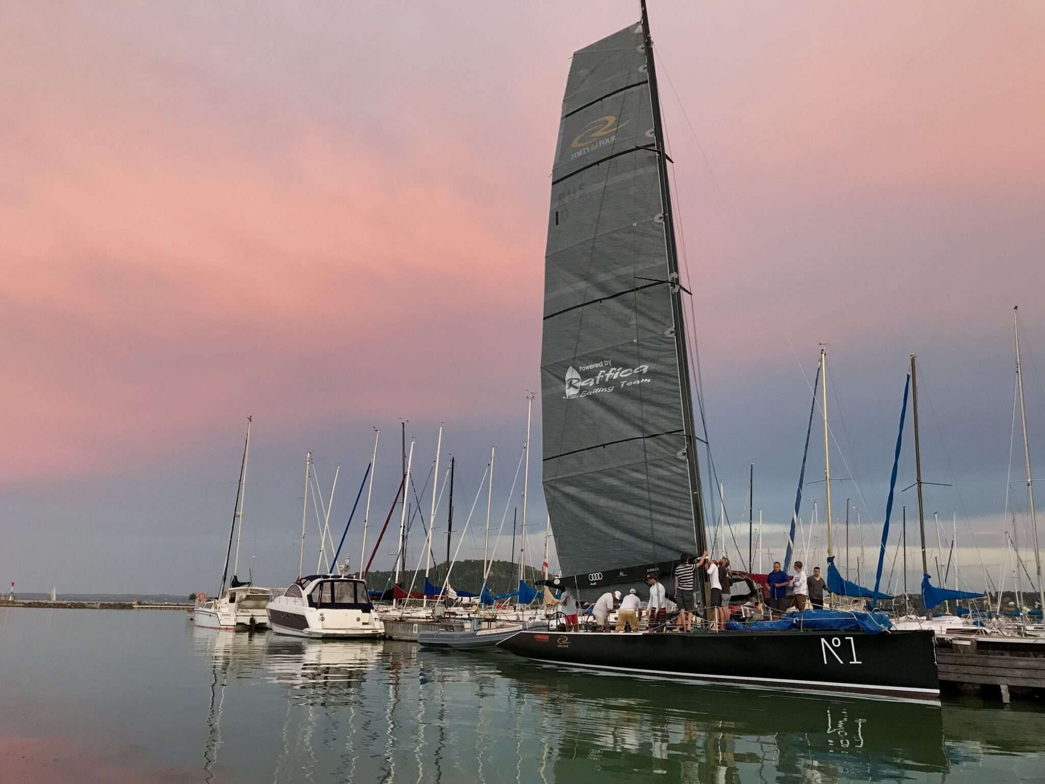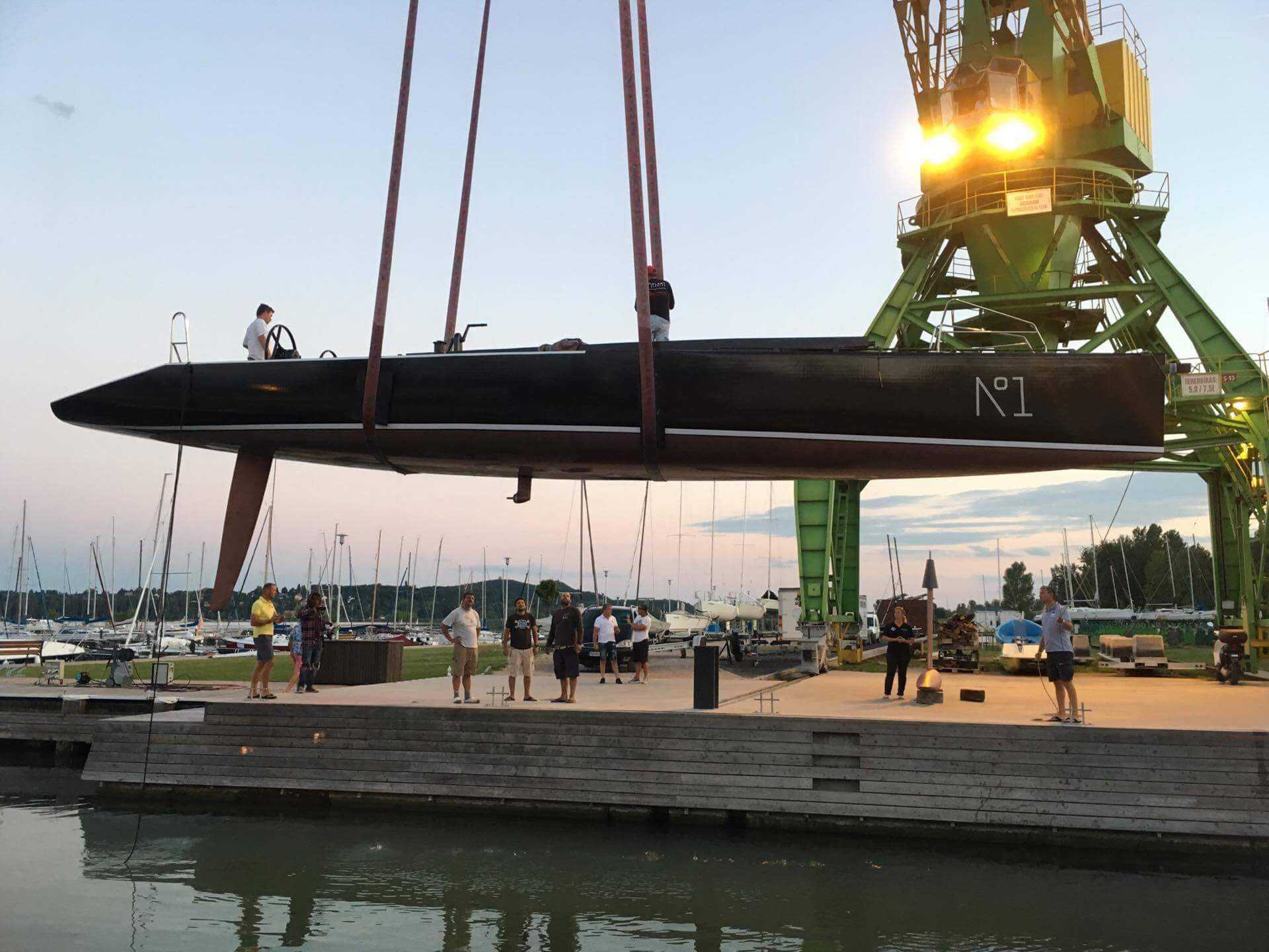 A kitartó munka eredményét koronázta este, hogy sikerült vízre tenni ezt a csodálatos versenyhajót.