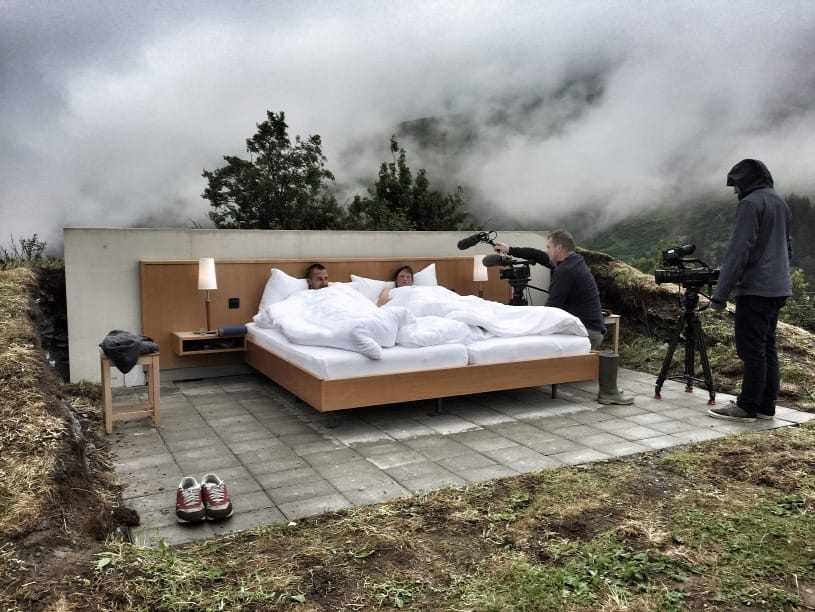 Egyetlen, szabad ég alatt álló franciaágy, mesés kilátással a svájci Alpokra és a Safien-völgyre –…