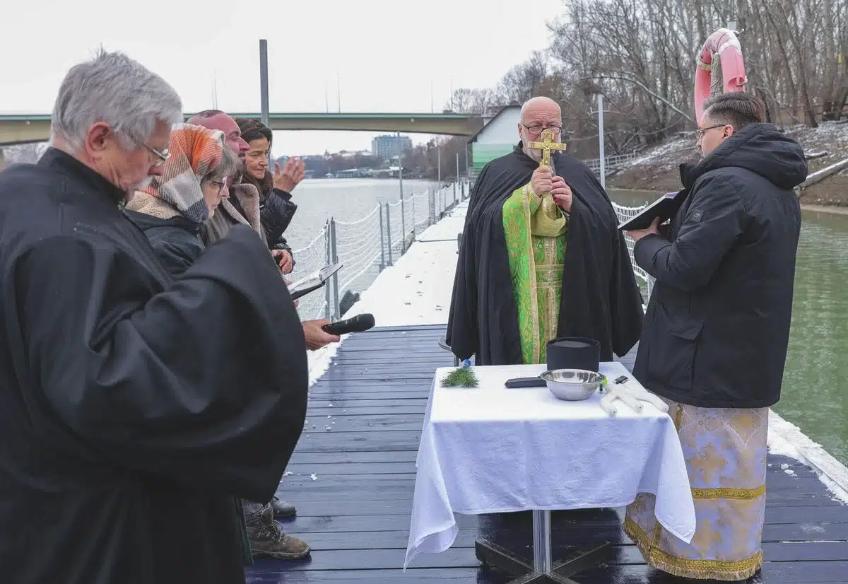 A Szegedi Görögkatolikus Egyházközség szertartása keretében Szaplonczay Miklós görögkatolikus pap megáldotta a Tiszát.