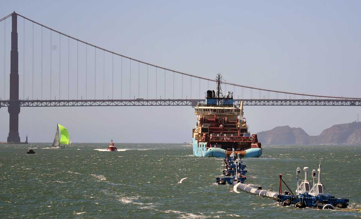 Egy kétezer láb hosszú úszó vezetékhez erősítették azt az hatalmas szemétszedő hálót, amely elérkezett a…