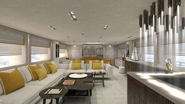 A belső tér tervezésekor a szórakozás is hangsúlyt kapott. A központi szalonban van egy bár, és egy 10 férőhelyes étkezőasztal. A tágas külső tér szintén a kikapcsolódást szolgálja: a fedélzeten jakuzzi, asztalok és napozóágyak kaptak helyet.