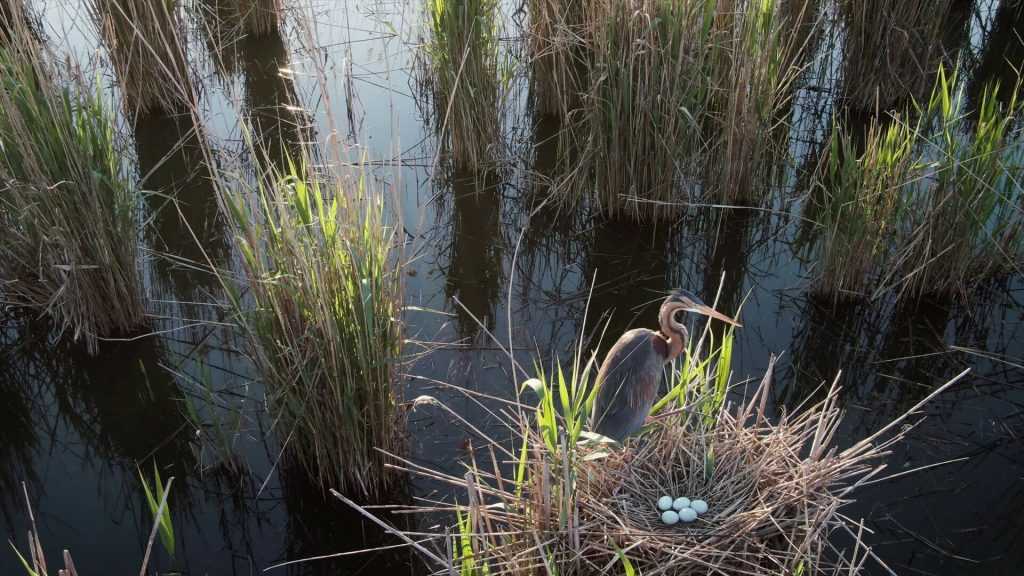 „Minden, ami ezeken az élőhelyeken történik, azt vízügyesek, tógazdák, sok diplomával, precíz mérőeszközökkel kontrollálják. Szabályozva van a vízszint, telepítve vannak a halak, nádas is csak ott nőhet, ahol az nincs útban a gazdaságnak. Néhol kicsit jobban szabályoznak, néhol kevésbé. Ott, ahol kevésbé, ott egy olyan mellékhatással találkozhatunk, hogy a természet teret hódított. Vannak olyan tógazdaságok, amelyeket fontos ősi vizes élőhelyek mentén létesítették. Itt a tógazdák törvényileg kötelezve vannak arra, hogy hagyjanak meg a természetnek olyan területeket, ahol nem folyik munka. Ezek azok a területek, ahol a lehető legnagyobb biodiverzitással találkozhatunk. A Biharugrai-halastavakon például ritka, védett madarak százai fészkelnek, mert nem zavarják őket és békében felnevelhetik a fiókáikat. Minél kapzsibb egy tógazdaság, annál zavaróbb például a madarak, vidrák jelenléte a számukra és annál kevesebb állattal is találkozhatunk a területén” – tette hozzá a rendező.