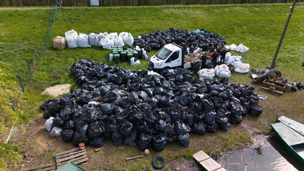 A Tisza-tónál, ahol egy háromnapos akció keretében 10 és fél tonna szemetet szedtek össze vállalati és civil önkéntesek. Az SOS Tisza-tó elnevezésű eseményen közel 400 résztvevő gyűjtötte a szemetet.
