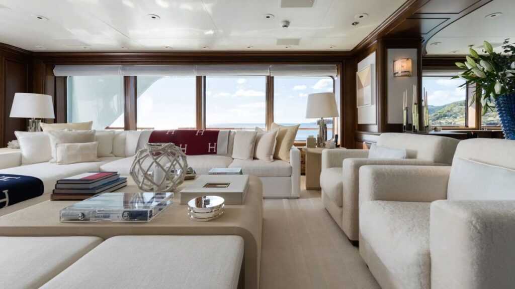 Hilfiger korábban jó néhány jachtot bérelt, köztük az ikonikus Christina O nevűt, valamint a Diamond A-t, a Huntresst és a Galaxyt – sok időt töltött azzal, hogy kidolgozza, mit szeret és mit nem: „Tervezőként nagyon válogatós vagyok az olyan dolgokkal kapcsolatban, mint a bútorok, a szőnyegek, a fürdőszobai berendezési tárgyak, a színvilág, és nem szeretném, ha a környezetem taszító vagy túlzó lenne. De azt sem szeretném, hogy túl minimalista legyen; az igazság valahol középen van. És persze azt akartam, hogy a családomnak is élhető, a vendégeim számára pedig elegáns és szép legyen.” (Vérbeli üzletemberként Hilfiger kezdettől azt tervezte, hogy bérbe adja a Flaget, amikor nem ő használja – a szerk.)