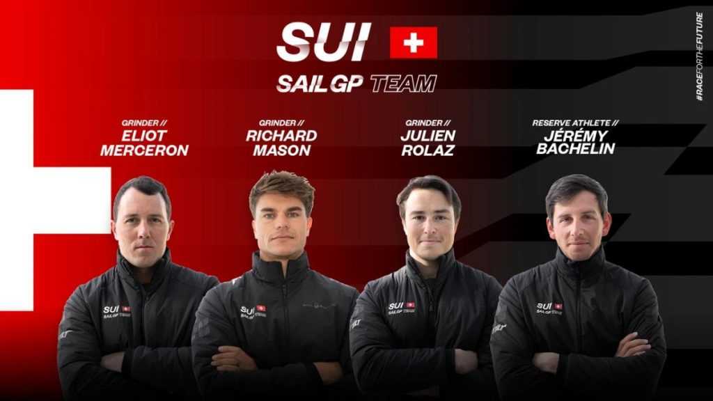 A svájci csapat a SailGP következő generációjához tartozik, ellenfeleik a világ legjobb vitorlázói közül kerülnek ki, küzdelmükhöz a föld legikonikusabb vízparti helyszínei adják a hátteret. Richard Mason (GBR), Eliot Merceron (SUI) és Julien Rolaz (SUI) grinder (csörlős) pozícióba került, míg Jeremy Bachelin (SUI) tartalékként támogatja a csapatot. A versenyen két grinder van a fedélzeten, az egyik előre-, a másik hátra néz. Feladatuk végrehajtásához komoly erőre és állóképességre van szükség, lévén a 10-20 perces futamok során végig a maximális pulzusszámuk közelében dolgoznak.