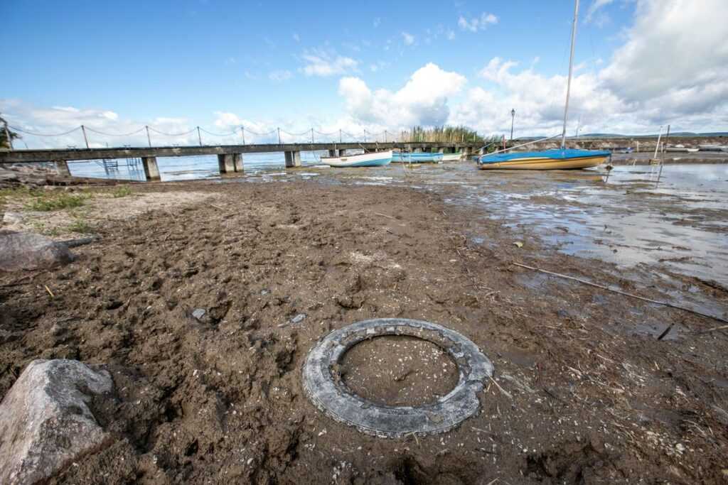 A korábbi napok esőzése dacára is kilátszanak homokszigetek a part közelében a vízből Balatonlellén és Bogláron. A vízi madarak számára kiváló napozóhelyet biztosítva a szeptemberi napsütésben. Van, ahol úgy visszahúzódott a víz, hogy az iszapban áll a vitorlás, és a lejárótól csak a cuppogó iszapon keresztül sétálva lehetne eljutni a vízig.