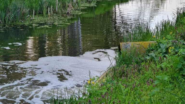 Még mindig nagy a gond Ceglédbercelnél, ömlik a tisztítatlan szennyvíz a Gerje-patakba, mely habzik a szennyeződéstől.