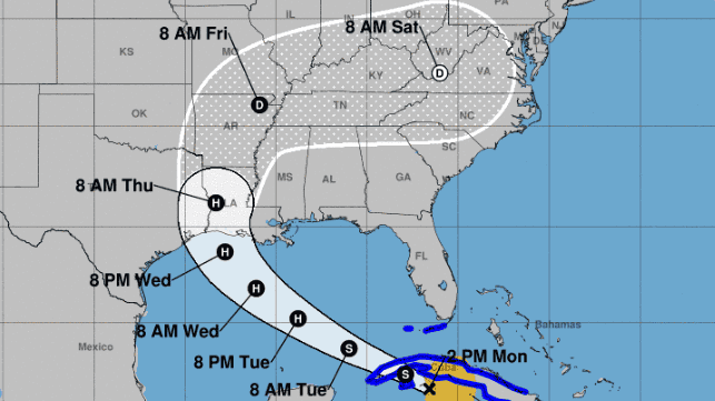 A Marco várhatóan hétfő délután érkezik, míg a Laura jelentősen megerősödik, mielőtt csütörtökön partot ér. Mindkét rendszer heves esőzésekkel kísért erős szelet hoz a part menti területekre, bár a Marcóra vonatkozó előrejelzés folyamatos gyengülést prognosztizál.