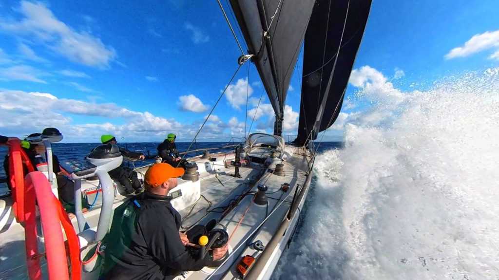 A “Chinese gybe” bárkivel előfordulhat, nem egy szerethető hiba a manőverezés közben. A perdülés vagy a halzolás 30 csomó felett és több nap vitorlázás fáradtságával a legénységnek nem könnyű feladat. Egyszer nekünk sem sikerült, de elképesztő, hogy mennyire jól megtervezett hajó a Wild Joe, hihetetlen, hogy miket kibír.