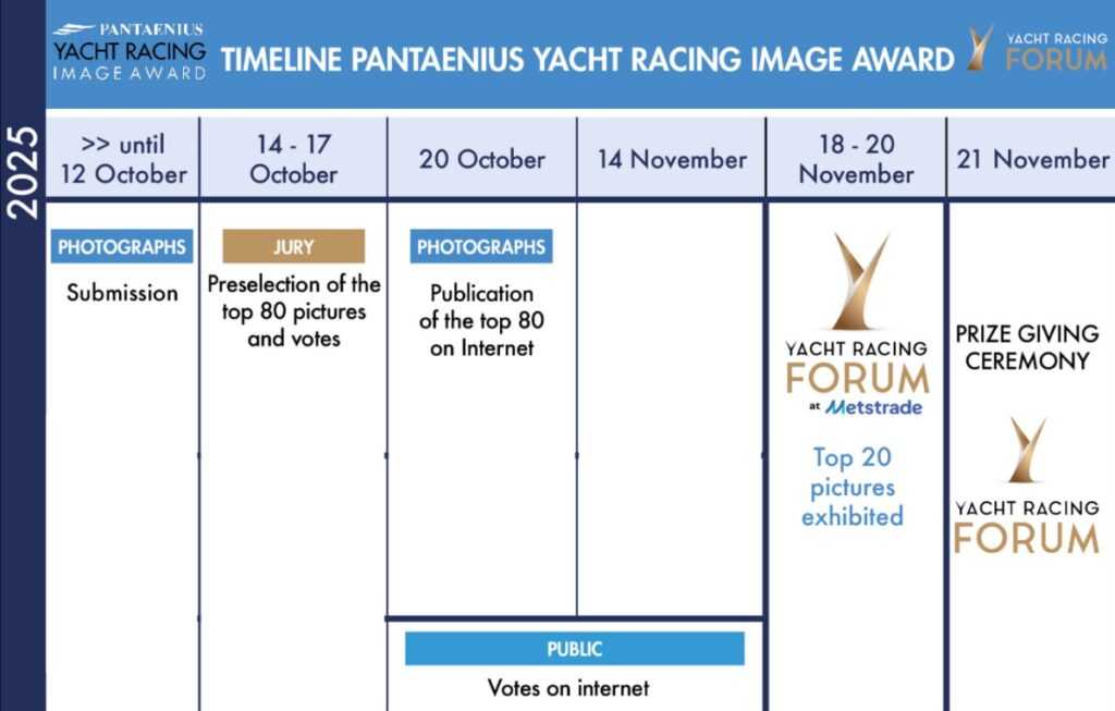 Tavasszal jelentették be, hogy a Pantaenius névadó támogatóként csatlakozott a megmérettetéshez, melynek díjátadójára az amszterdami Metstrade-en zajló Yacht Racing Forumon kerül sor, ahol a 20 legjobb képet kiállítják. A „felhívás” már elhangzott, a fotósoknak október 12-éig van lehetősége arra, hogy beküldjék pályamunkájukat, melyet 2024. október 14. és az idei leadási határidő között készítettek.