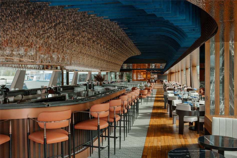 Kialakításának köszönhetően az 50 és a 100 fős vacsorák kiszolgálása sem jelent gondot a személyzetnek, miközben akár egy 600 fős eseményt is képesek kényelmesen kiszolgálni. Elegáns belső terek, a hajós élethez kapcsolódó meglepetések, váratlan fordulatok jellemzik a dizájnt. Az enteriőr megtervezéséhez egy tehetséges, számos díjat elnyert hazai csapatot, az Este’r partners dizájnstúdiót bízták meg a tulajdonosok, akik számos izgalmas, a Dunához kapcsolódó részletet rejtettek el a térben.