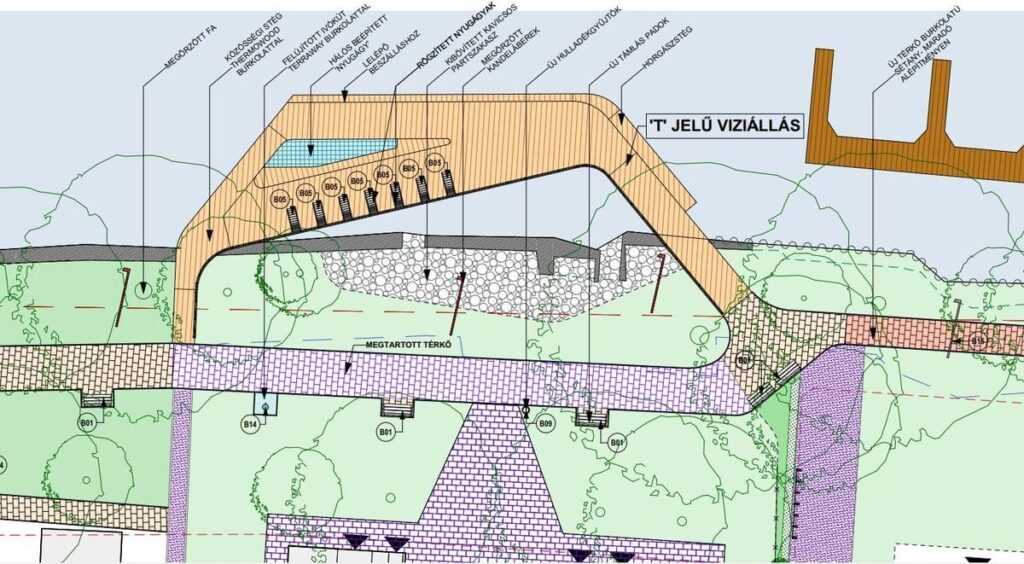 A beruházás egyik leglátványosabb elemei a stégek lesznek – ezek részben cölöpökön álló „víziállások”, részben a Dunán lebegő „úszóművek”, amelyeken padok és nyugágyak csábítják majd a látogatókat a vízközeli pihenésre.
