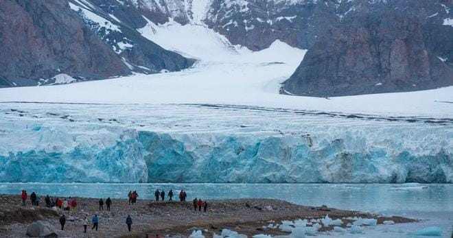 A Norvégiához tartozó, Spitzbergák néven is ismert északi-sarkvidéki szigetcsoporton a gleccserek olvadásának köszönhetően.
