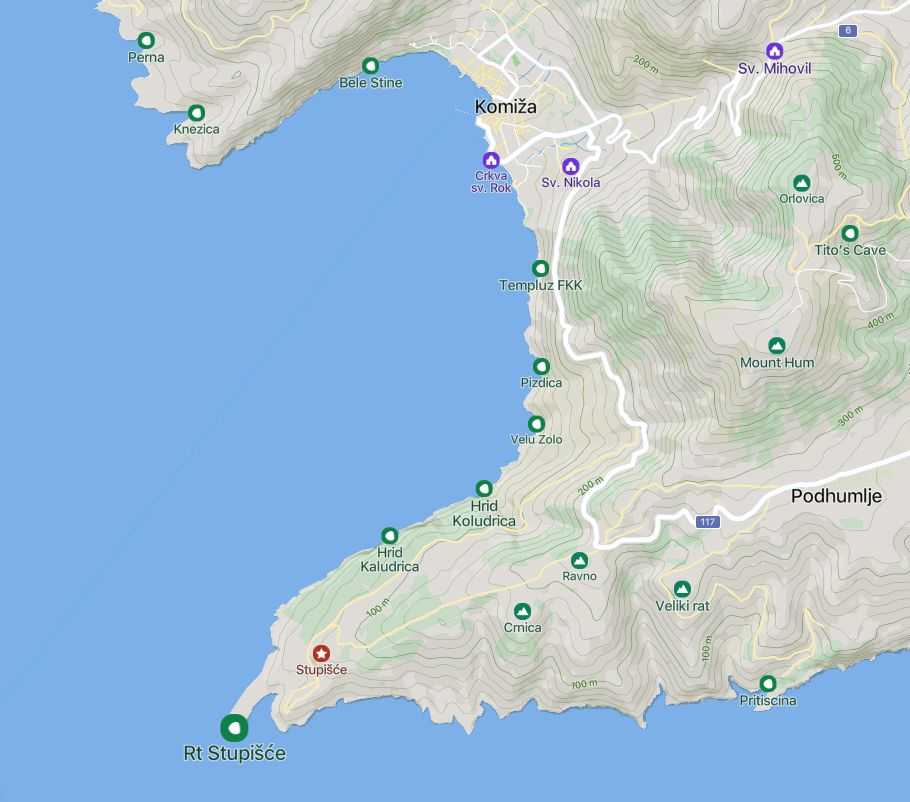 A Komiša-öböl keleti végén lévő 100 hektáros övezetben teljes halászati tilalmat vezetnek be, hogy segítsék a tengeri élővilág újjászületését. A Stupišće-fokról lenyűgöző kilátás nyílik Biševóra, Svetacra és a nyílt tengerre. Ezt a helyet a víz alatti zátonyok nagy száma és olyan értékes fajok, mint a dentex, a homár és a skorpióhal jelenléte miatt választották ki.