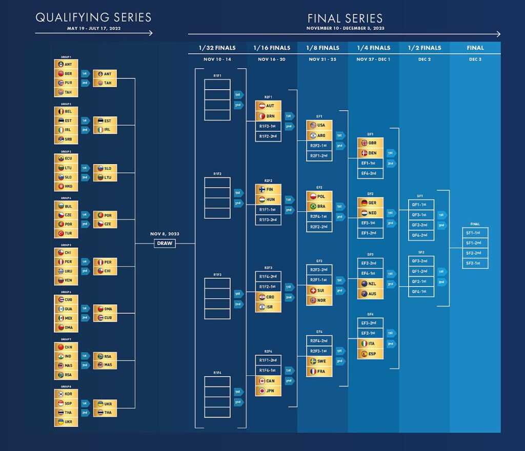 Gran Canarián 40 csapat versenyez majd az SSL Gold Cup döntőjében. A világ legjobb 24 vitorlás nemzetének (köztük Magyarország) tagjai az SSL ranglistáról, további 16 csapat a 2022 májusa és júliusa között megrendezett selejtezősorozatból jutott be. Akárcsak a labdarúgás csúcseseményén, minden csapat a saját nemzetének színeit és emblémáit viseli majd. Minden csapatban 11 sportoló szerepel, ami több mint 400 vitorlázót jelent.