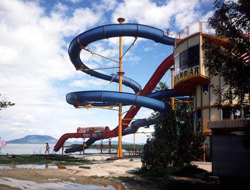 Az 1988-ban épült, majd a 2000-es évek elején veszélyessé vált, ezért lezárt vízicsúszda egykor az üdülőrégió egyik legkomplexebb turisztikai attrakciója volt. Nemcsak csúszdaként működött, hanem a legfelsőbb szintjén éjszakai bár is üzemelt. Balatonfenyvesnek előbb meg kellett vásárolnia a tulajdonosától a közel két évtizede amortizálódó létesítményt, hogy élni tudjon az állami támogatás lehetőségével. Végül 100 millió forintos állami támogatásból, és 13 millió forintnyi önerőből újult meg a csúszda.